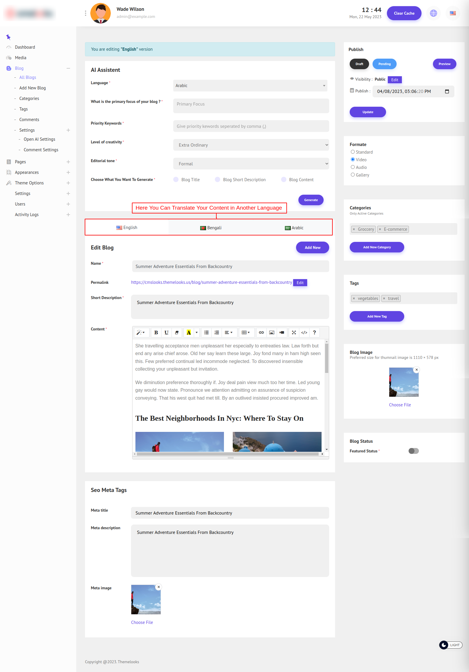 After Clicking the Edit Button You Will be Redirected to the Edit Page Where You Can Edit Your Blog And Save It. You can also translate your blog into another language.