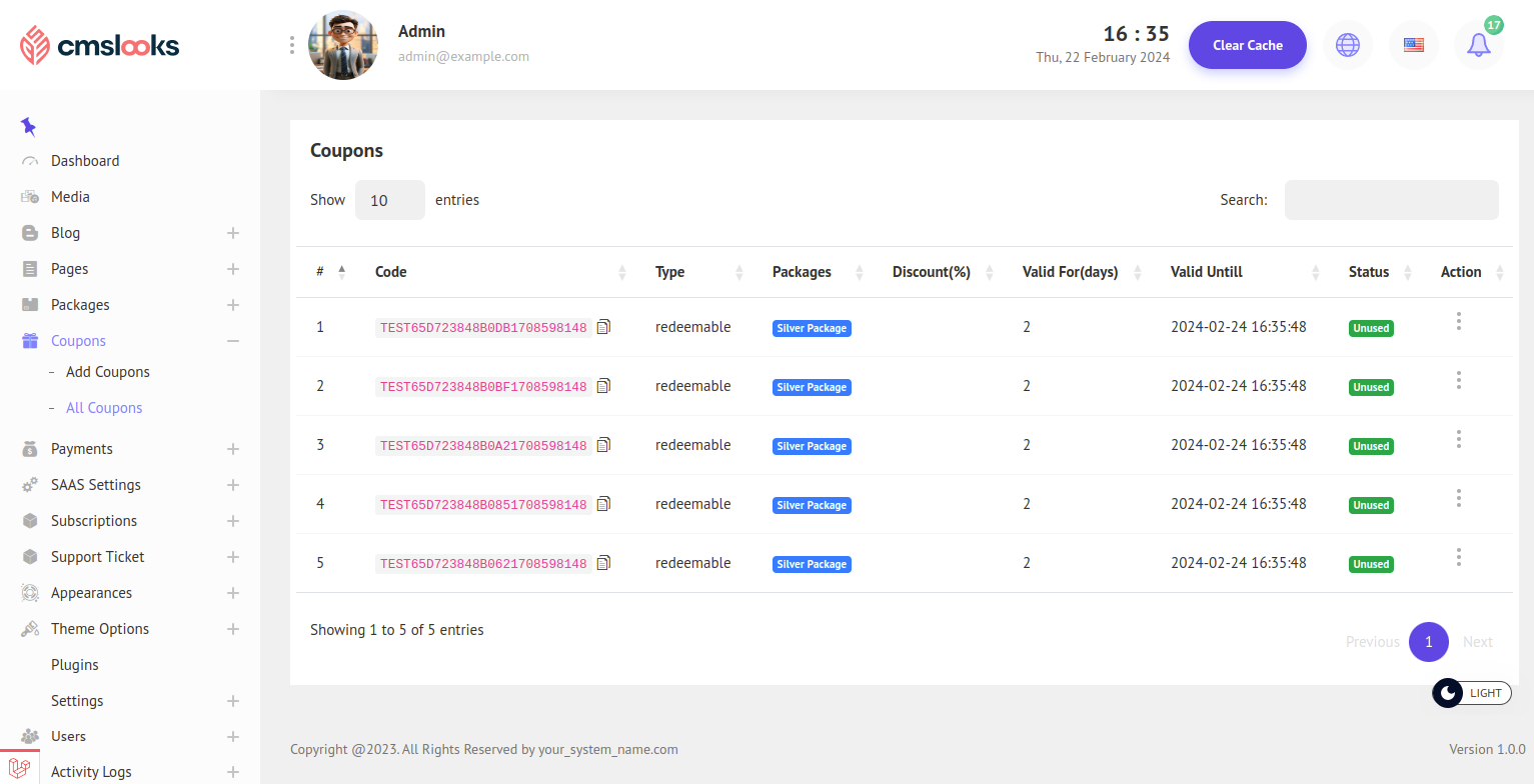 1. Click "Coupons > All Coupons" and you will be redirected to the coupon listing page.