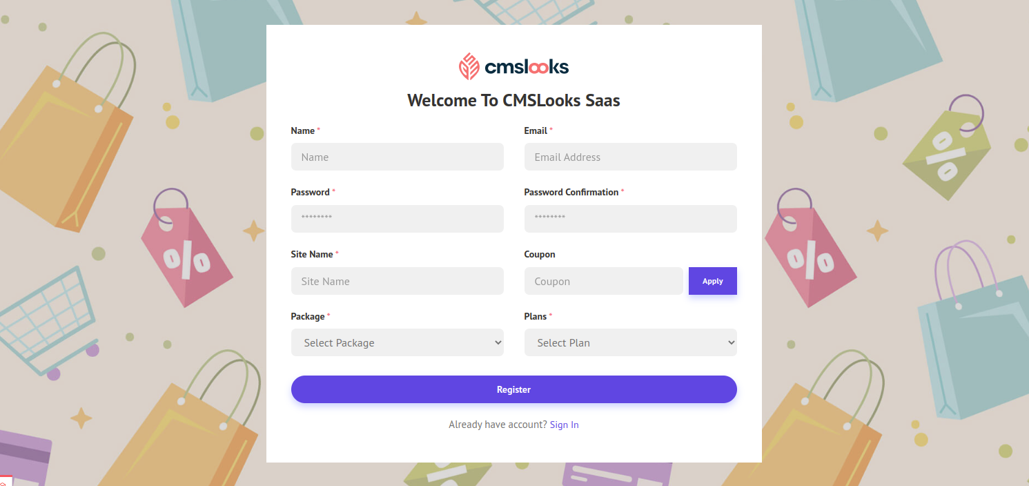 1. On the home page of your system, customers will see a "Sign Up " button. After clicking the button customers will be redirected to the registration page.